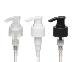 Yes, we offer several options for customizing the appearance of lotion pumps. Special processes and treatments like external spring design, frosted surfaces, UV plating, and nested aluminum over closures for gold or silver colors can give the pumps a sophisticated look. Moreover, we can customize the color to match your brand’s identity. We also offer customization for dip tube length, which is important for ensuring proper liquid intake based on the bottle’s size and shape.Â